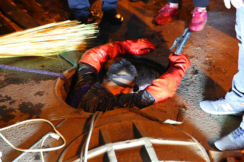 漏點冒出的水溫高達(dá)90℃,搶修人員掀起蓋板,用風(fēng)扇向人井內(nèi)吹風(fēng)降溫,隨后冒著被燙傷的危險進(jìn)入人井中搶修,但由于伸縮器和管道都腐蝕嚴(yán)重,狹小的空間無法更換伸縮器。為了保障用戶的溫暖,用最快的速度排除故障,分公司領(lǐng)導(dǎo)決定破路開溝,擴(kuò)大作業(yè)面,于是及時調(diào)來的挖掘機(jī)一直挖到凌晨4點才拓展出一個能夠滿足施工要求的空間。